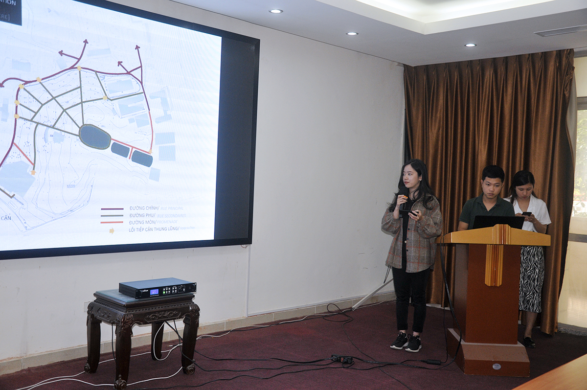 Về phía Trường Đại học Kiến trúc Hà Nội có TS.KTS. Nguyễn Thái Huyền – Phó Viện trưởng Viện Đào tạo và Hợp tác Quốc tế cùng tập thể lớp Thạc sĩ Pháp ngữ DPEA chuyên ngành Thiết kế đô thị, di sản và phát triển bền vững và lớp Cử nhân Kiến trúc Pháp.