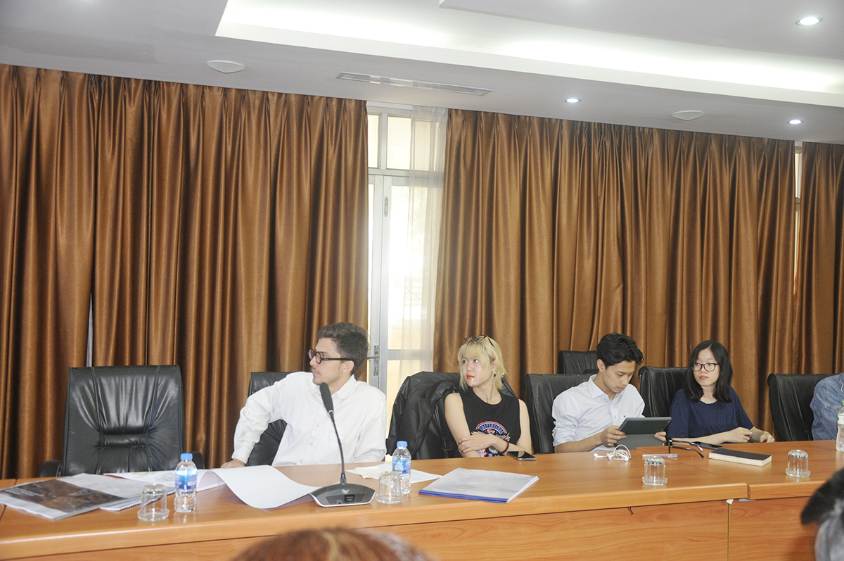 Về phía Trường Đại học Kiến trúc Hà Nội có TS.KTS. Nguyễn Thái Huyền – Phó Viện trưởng Viện Đào tạo và Hợp tác Quốc tế cùng tập thể lớp Thạc sĩ Pháp ngữ DPEA chuyên ngành Thiết kế đô thị, di sản và phát triển bền vững và lớp Cử nhân Kiến trúc Pháp.