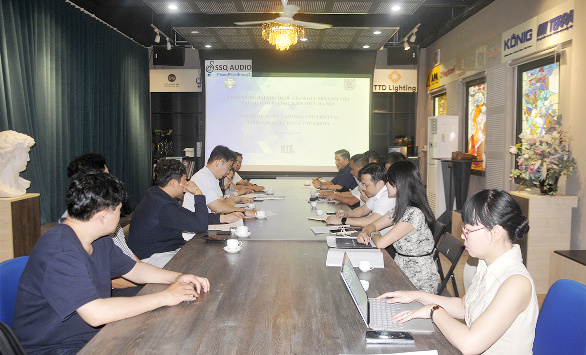 Thay mặt lãnh đạo Nhà trường, PGS.TS.KTS. Lê Quân gửi lời chào mừng đoàn công tác Đại học Quốc gia Seoul đến thăm, làm việc, đặt quan hệ hợp tác với HAU; chia sẻ với đoàn về thành tựu hơn 55 năm xây dựng và phát triển Trường Đại học Kiến trúc Hà Nội cũng như công tác hợp tác Quốc tế của Nhà trường, đặc biệt là sự gắn kết với các đối tác Hàn Quốc nhiều năm qua. Những thành tựu đã đạt được trong thời gian qua được minh chứng bằng những biên bản ký kết hợp tác giữa Nhà trường với các đối tác Hàn Quốc và nhiều quốc gia khác.
