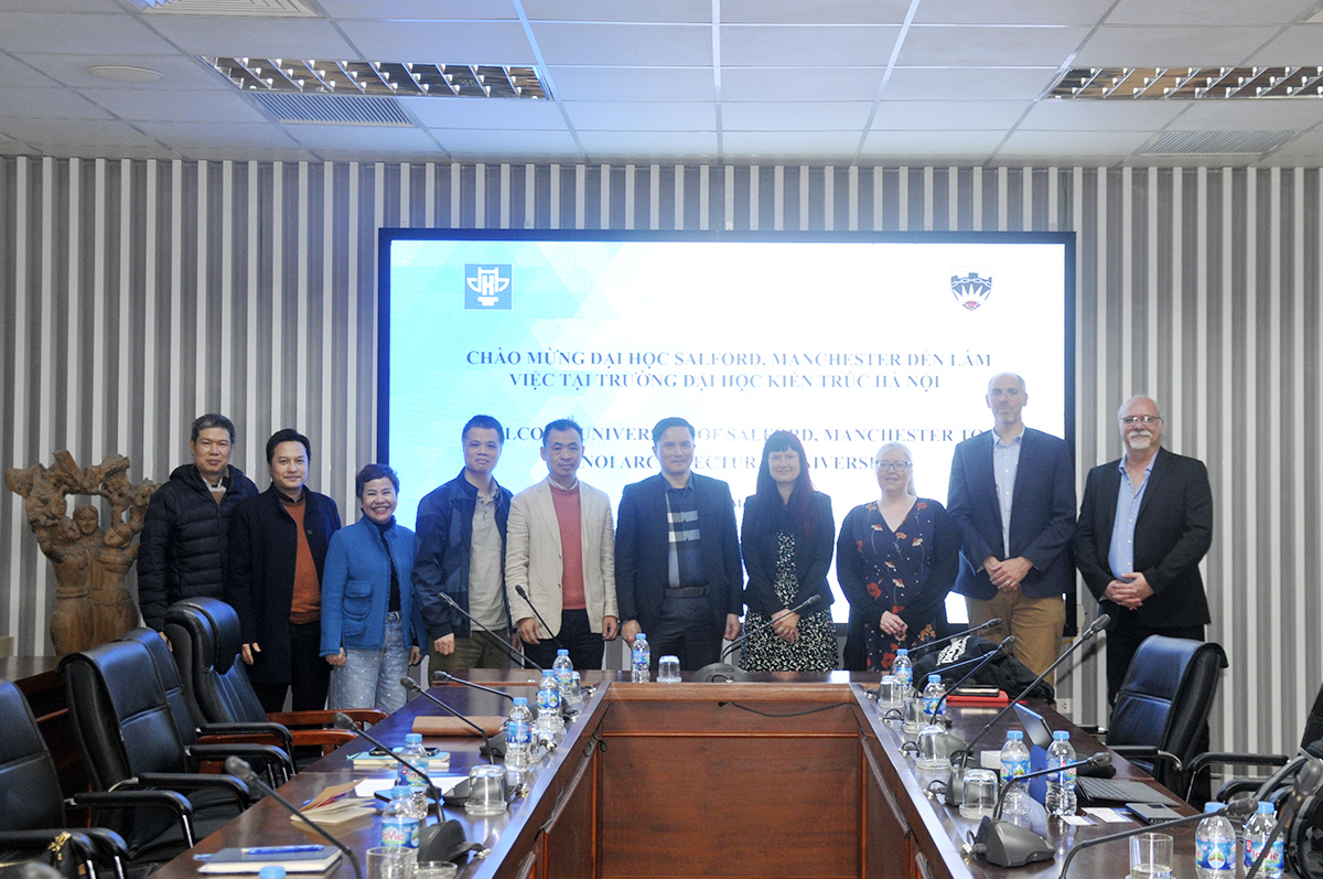 Sáng 17/3/2025, PGS.TS.KTS. Lê Quân – Hiệu trưởng Trường Đại học Kiến trúc Hà Nội (HAU) cùng đại diện lãnh đạo Viện Đào tạo và Hợp tác Quốc tế, Khoa Kiến trúc, Khoa Xây dựng, Khoa Quản lý đô thị đã tiếp đón GS. David Greensmith – Trường Khoa học, Kỹ thuật và Môi trường cùng TS. Simon Ireland – Trường Kinh doanh Salford, Đại học Salford Vương Quốc Anh đến thăm và làm việc với lãnh đạo Nhà trường.