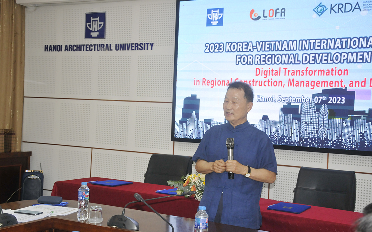 Trong 03 ngày 07, 08 và 09/9/2023, Trường Đại học Kiến trúc Hà Nội (HAU) chủ trì và phối hợp với Hội Quy hoạch và Phát triển Đô thị Việt Nam (VUPDA), Hiệp hội Tài chính Địa phương (KRDA) và Hiệp hội Phát triển Khu vực Hàn Quốc (LOFA) tổ chức Hội thảo Quốc tế với chủ đề “Digital Transformation in Regional Construction, Management, and Development – Chuyển đối số trong xây dựng, quản lý và phát triển vùng”. Hội thảo nhằm góp phần phổ biến, nhận diện những vấn đề của chuyển đổi số trong quản lý phát triển vùng và đô thị, với chức năng đào tạo, nghiên cứu chuyển giao công nghệ.