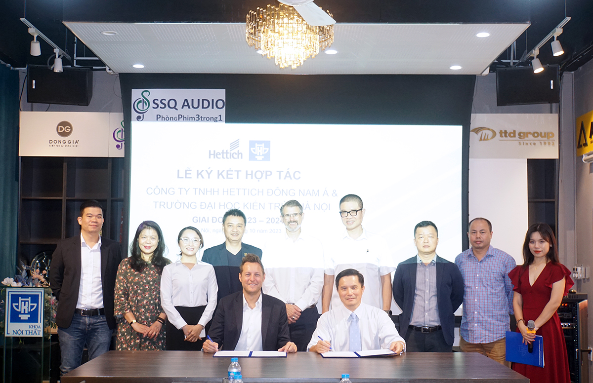 Với mong muốn thúc đẩy quan hệ đối tác chiến lược, sáng 20/10/2023 tại Tầng 1, tòa Interior, Trường Đại học Kiến trúc Hà Nội đã diễn ra lễ ký kết Biên bản ghi nhớ hợp tác giữa Trường Đại học Kiến trúc Hà Nội và Công ty TNHH Hettich Đông Nam Á.