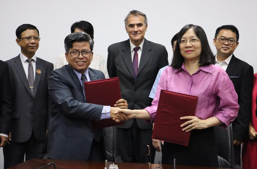 Ngày 09/06/2023 tại ĐH Mỹ thuật Hoàng gia Campuchia, Phnom Penh; Phó Hiệu trưởng HAU – TS.KTS. Ngô Thị Kim Dung và TS. Heng Sophady – Hiệu trưởng Trường Đại học Mỹ thuật Hoàng gia Campuchia cùng ký kết thỏa thuận hợp tác dưới sự chứng kiến của đại diện hai bên và Giám đốc Văn phòng AUF châu Á Thái Bình Dương, ngài Laurent Sermet.