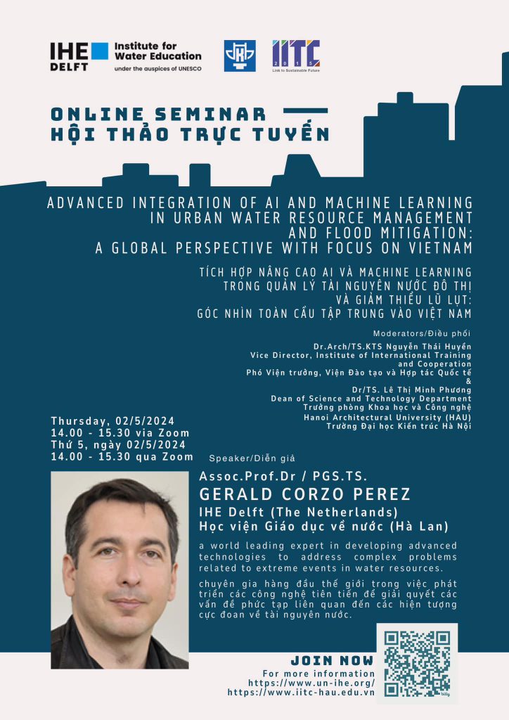 HỘI THẢO CHUYÊN ĐỀ: “TÍCH HỢP NÂNG CAO AI VÀ MACHINE LEARNING TRONG QUẢN LÝ TÀI NGUYÊN NƯỚC ĐÔ THỊ VÀ GIẢM THIỂU LŨ LỤT: GÓC NHÌN TOÀN CẦU TẬP TRUNG VÀO VIỆT NAM”