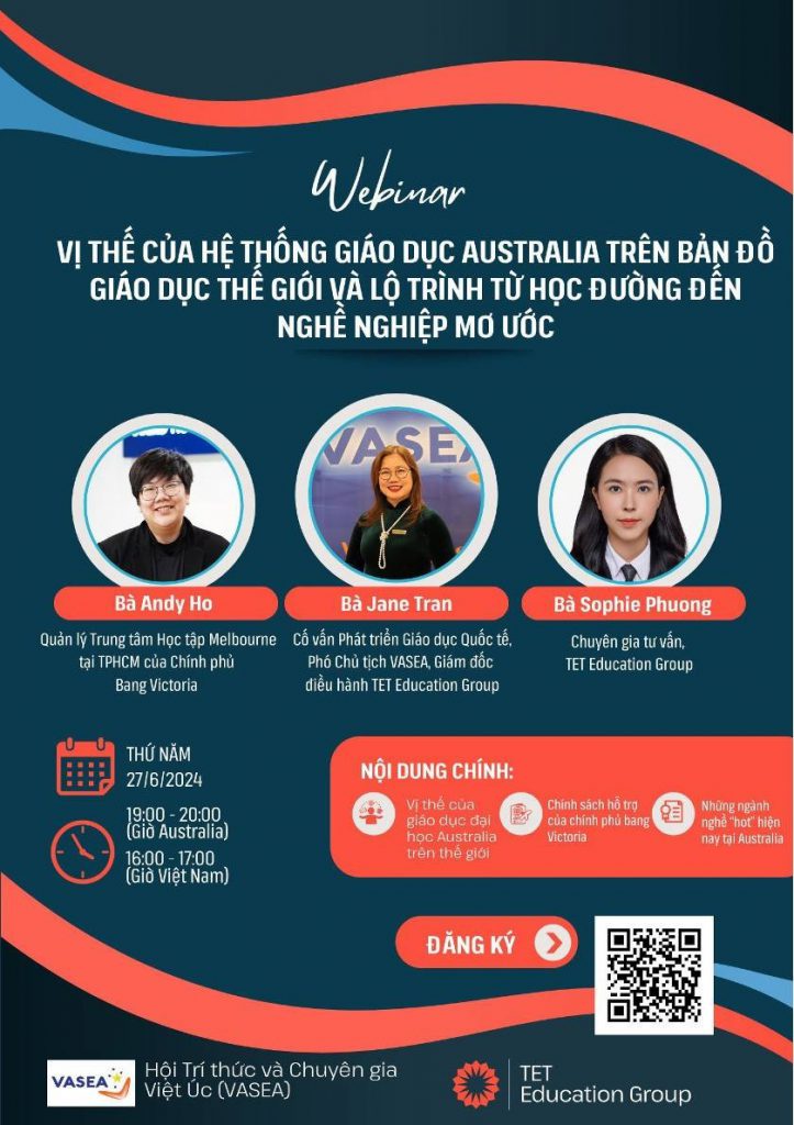GIỚI THIỆU CHUỖI WEBINAR SẮP TỚI – VỊ THẾ CỦA HỆ THỐNG GIÁO DỤC AUSTRALIA TRÊN BẢN ĐỒ GIÁO DỤC THẾ GIỚI VÀ LỘ TRÌNH TỪ HỌC ĐƯỜNG ĐẾN NGHỀ NGHIỆP MƠ ƯỚC