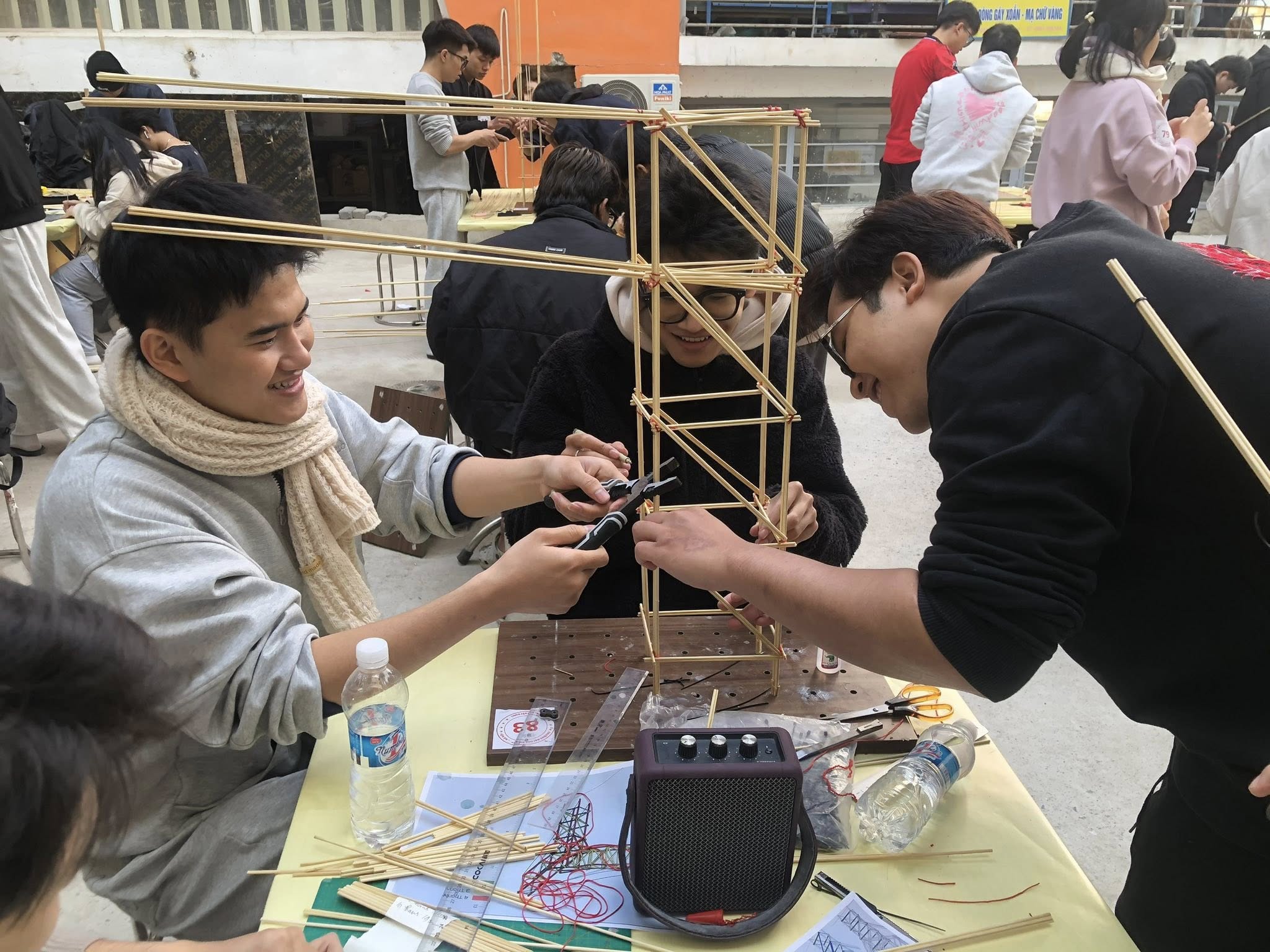 Năm nay, chương trình Kiến trúc Tiên tiến (KTT) đã góp mặt với 19 đội thi, mang đến những mô hình đầy tư duy kỹ thuật, sáng tạo và dấu ấn kiến trúc trẻ. Các sản phẩm đều thể hiện khả năng thiết kế cấu trúc, tối ưu vật liệu tre, tư duy không gian và tinh thần làm việc nhóm ấn tượng.
