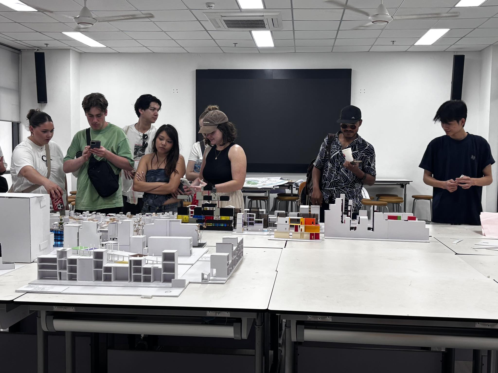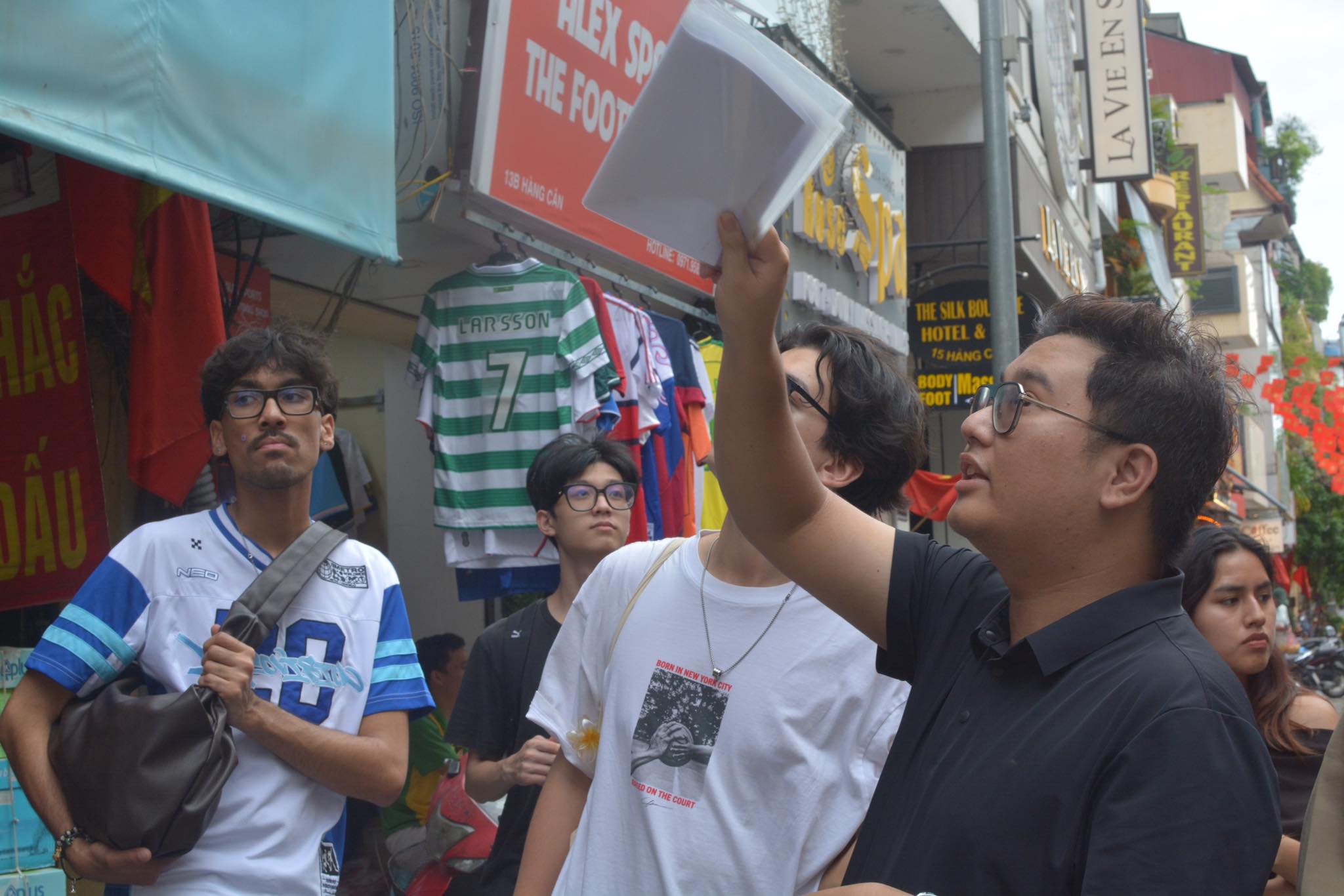 Buổi chiều, sinh viên được khảo sát thực địa tại Phố Cổ Hà Nội, đặc biệt là những khu phố nơi sinh viên KTT đang nghiên cứu cho đồ án tốt nghiệp, cũng là nơi lưu giữ linh hồn của thành phố nghìn năm tuổi. Tại đây, các bạn được xem trực tiếp các nghiên cứu của các bạn sinh viên tại Phố Cổ, và sau đó xem những mô hình đồ án của sinh viên KTT đã và đang thực hiện, hiểu rõ hơn cách sinh viên HAU tiếp cận việc nghiên cứu bảo tồn và phát triển không gian đô thị.