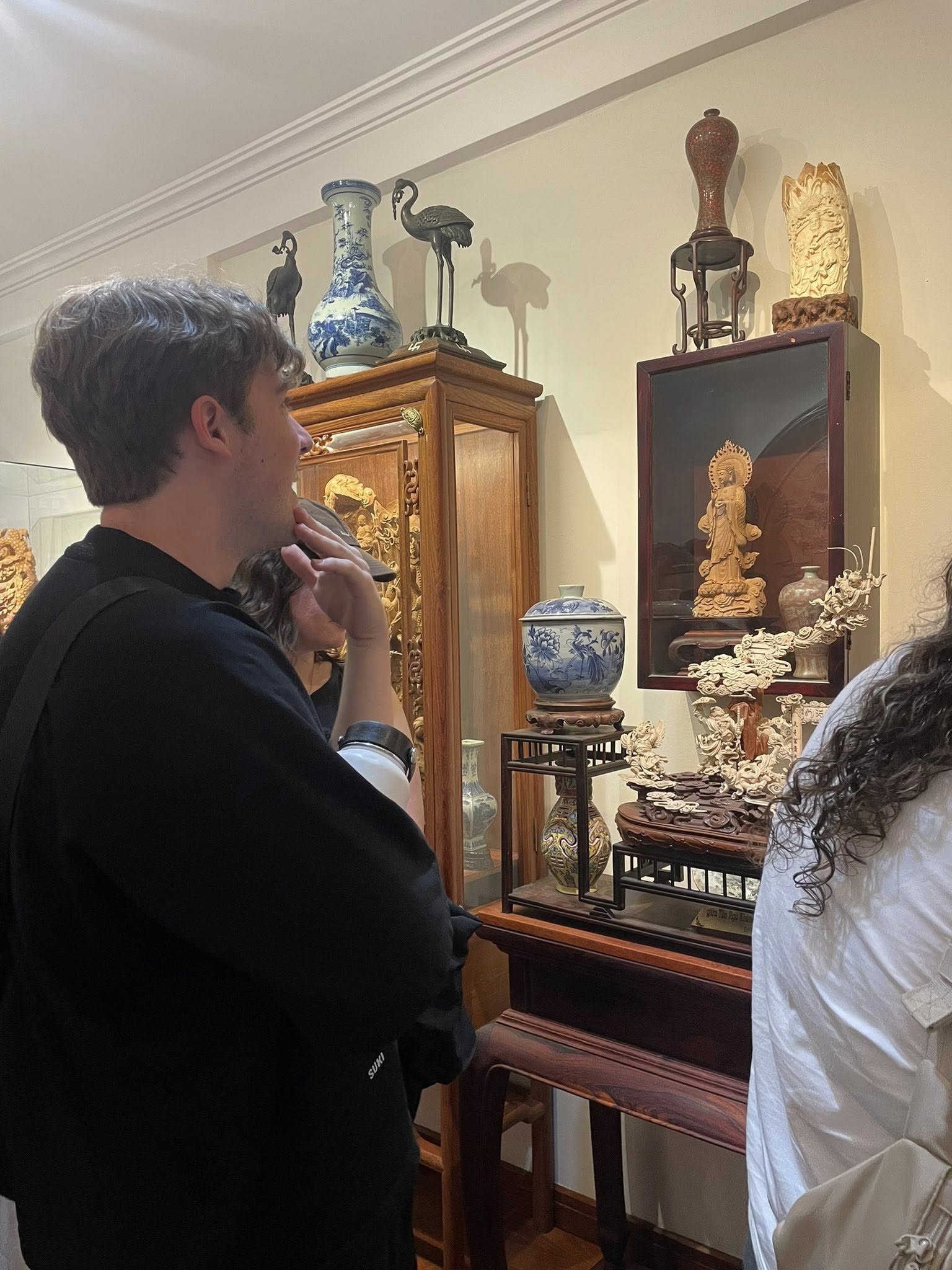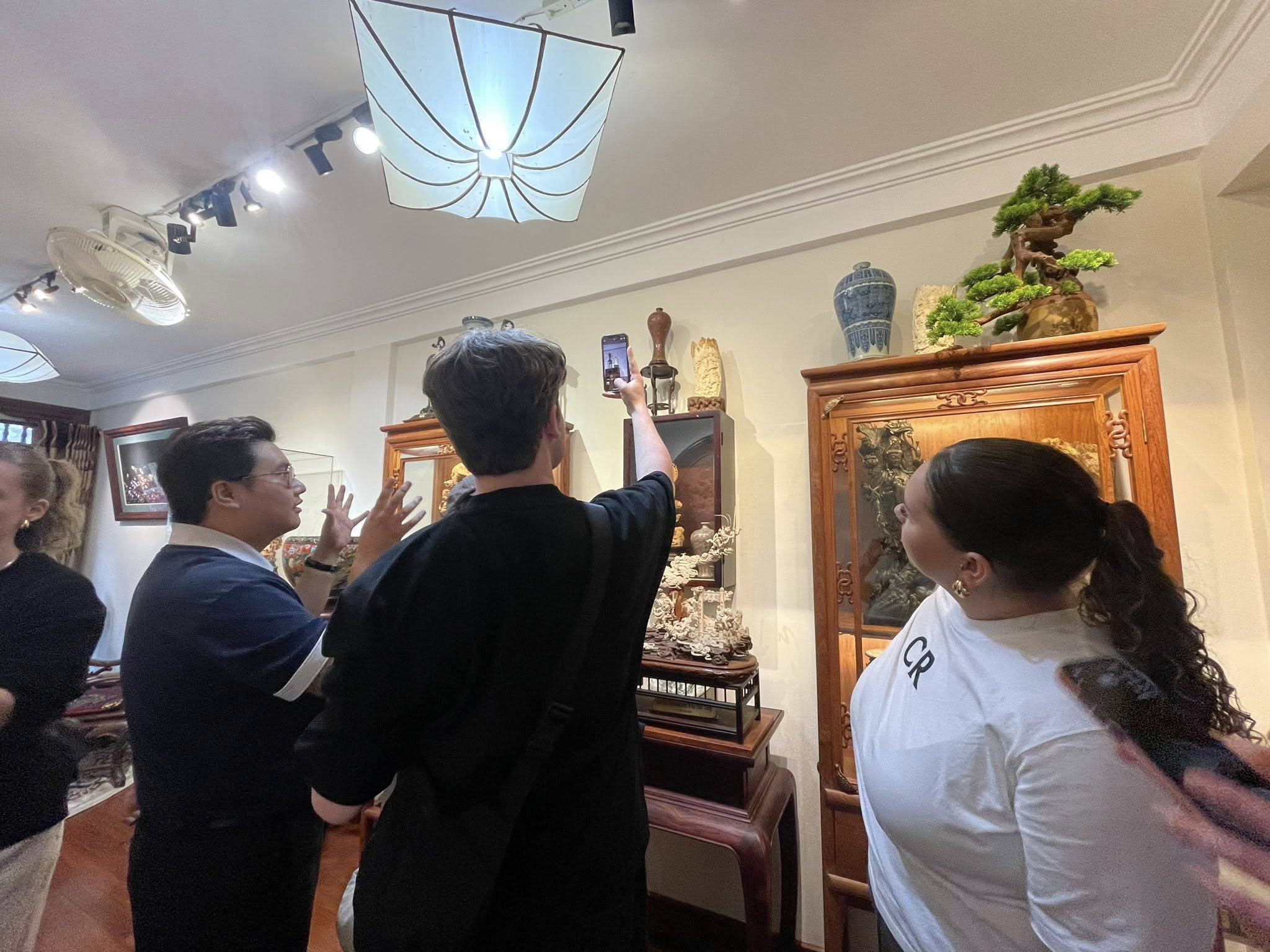Buổi chiều, sinh viên được gặp gỡ và học hỏi cùng một nghệ nhân điêu khắc nổi tiếng tại Phố Cổ, trực tiếp quan sát kỹ thuật thủ công, lắng nghe câu chuyện về nghệ thuật truyền thống và cảm nhận nhịp sống của 36 phố phường Hà Nội.