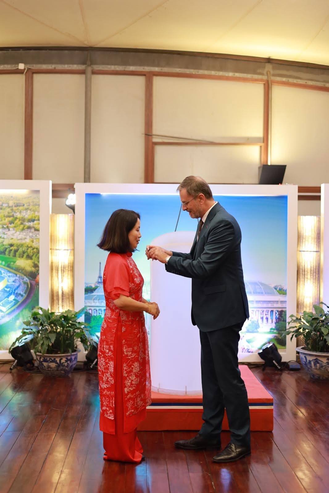 TS.KTS. NGUYỄN THÁI HUYỀN (PHÓ VIỆN TRƯỞNG VIỆN ĐÀO TẠO VÀ HỢP TÁC QUỐC TẾ) NHẬN HUÂN CHƯƠNG CÀNH CỌ HÀN LÂM CỦA CHÍNH PHỦ PHÁP