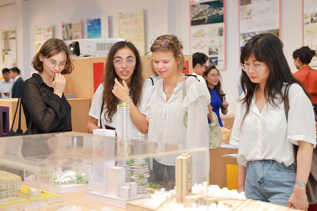 Triển lãm các sản phẩm đào tạo là trải nghiệm lý thú giúp các bạn trẻ tìm hiểu về các ngành kiến trúc, nội thất liên kết quốc tế tại HAU