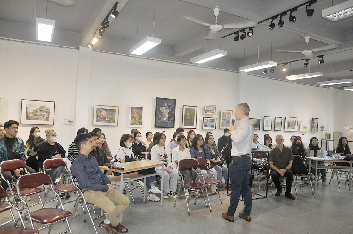 *Sau buổi làm việc, GS. Andrew Wallace đã có buổi nói chuyện chuyên đề “Sử dụng các đồ vật và trải nghiệm hàng ngày để tưởng tượng về không gian” với sinh viên Chương trình Tiên tiến tại tầng 1 – Tòa nhà Art Garlery, Trường Đại học Kiến trúc Hà Nội.